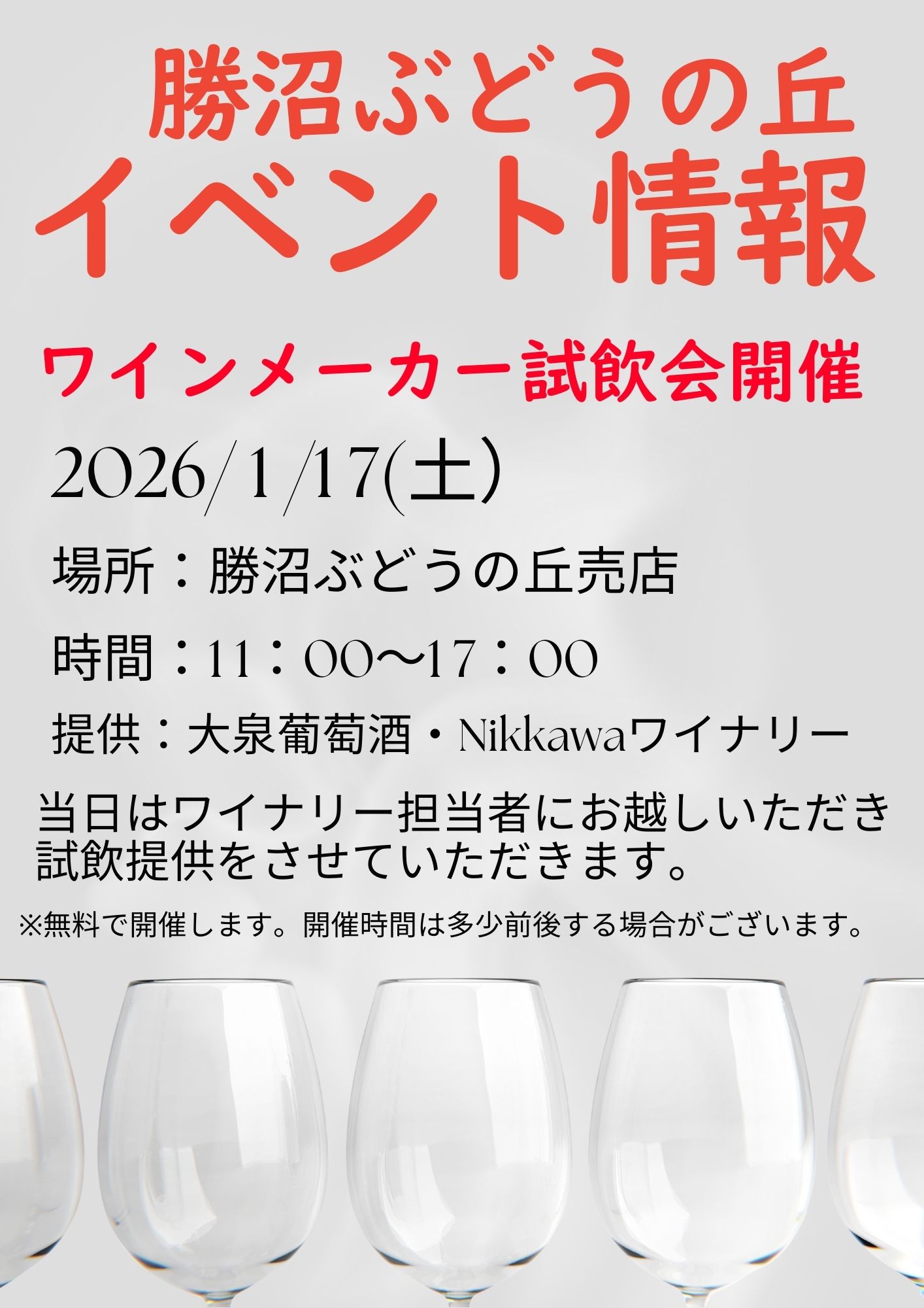 1月17日(土)にぶどうの丘売店にて無料で開催をいたします。
