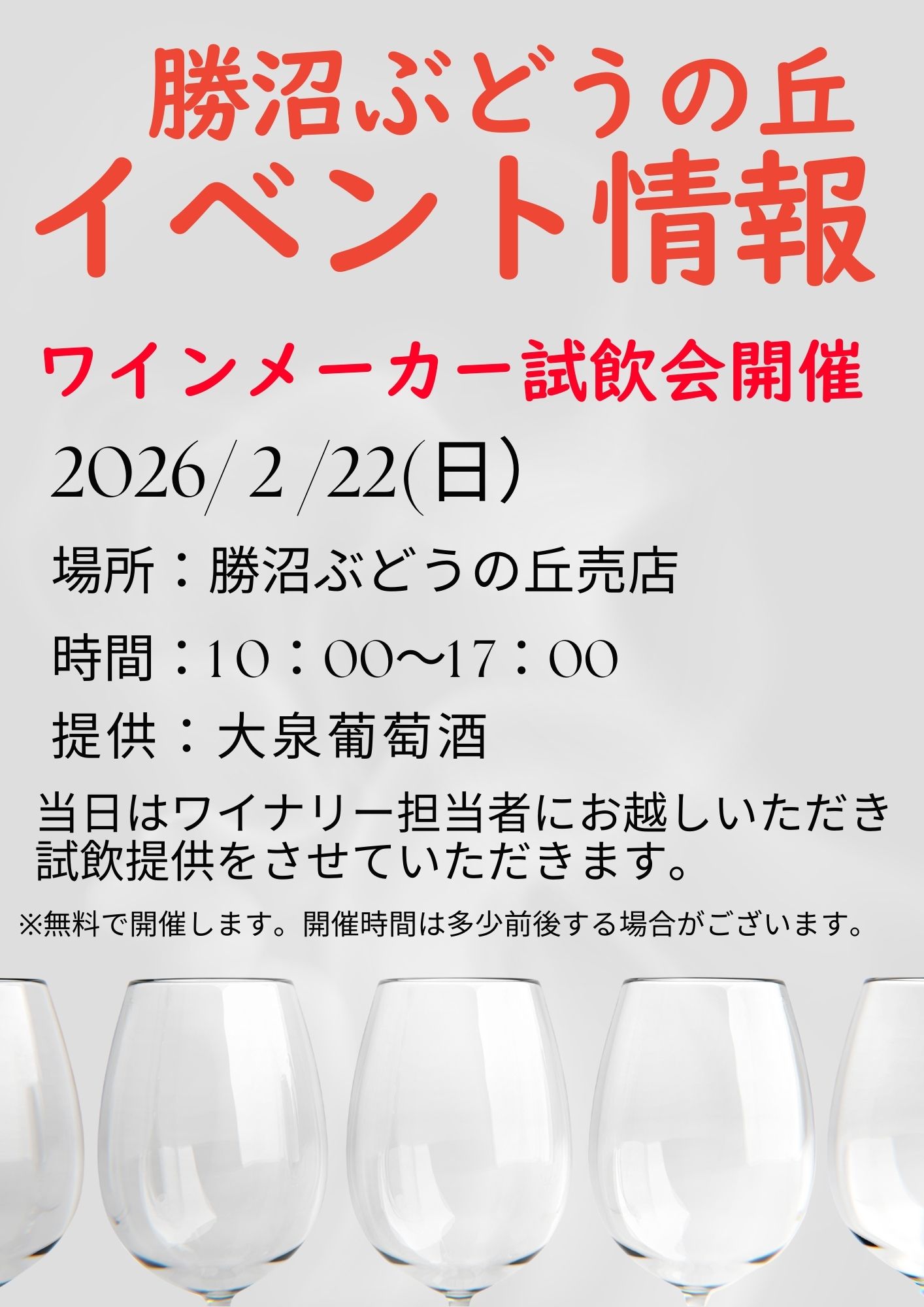 ぶどうの丘へお越しの際はぜひ、当試飲会をお楽しみください。